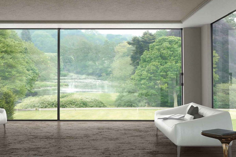 La linea Oltre è la soluzione ideale per progetti che richiedono ampi spazi vetrati con linee ridotte di alluminio.
