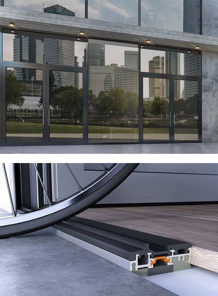 Distinto per il suo design moderno e le sue elevate prestazioni, il sistema offre la possibilità di realizzare anche porte d'ingresso con pannelli o con tamponamenti vetrati.