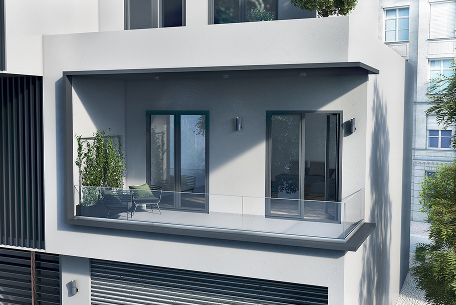 Distinto per il suo design moderno e le sue ottime prestazioni, il sistema offre la possibilità di realizzare anche porte d'ingresso con pannelli o con tamponamenti vetrati.